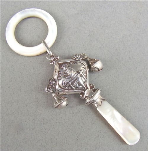 Unusual George V Silver & Mother of Pearl Rattle by W H Collins & co, Birmingham 1934