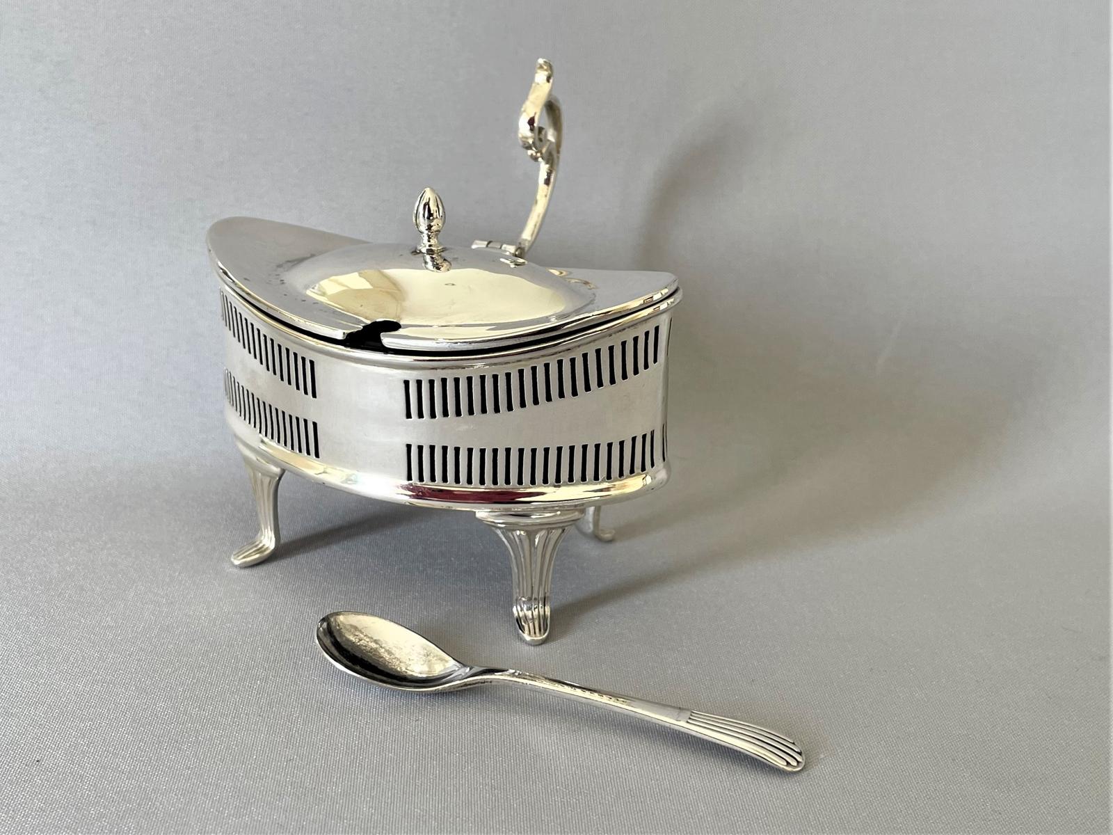 Unusual George V Silver Mustard Pot & Spoon (1 of 8)