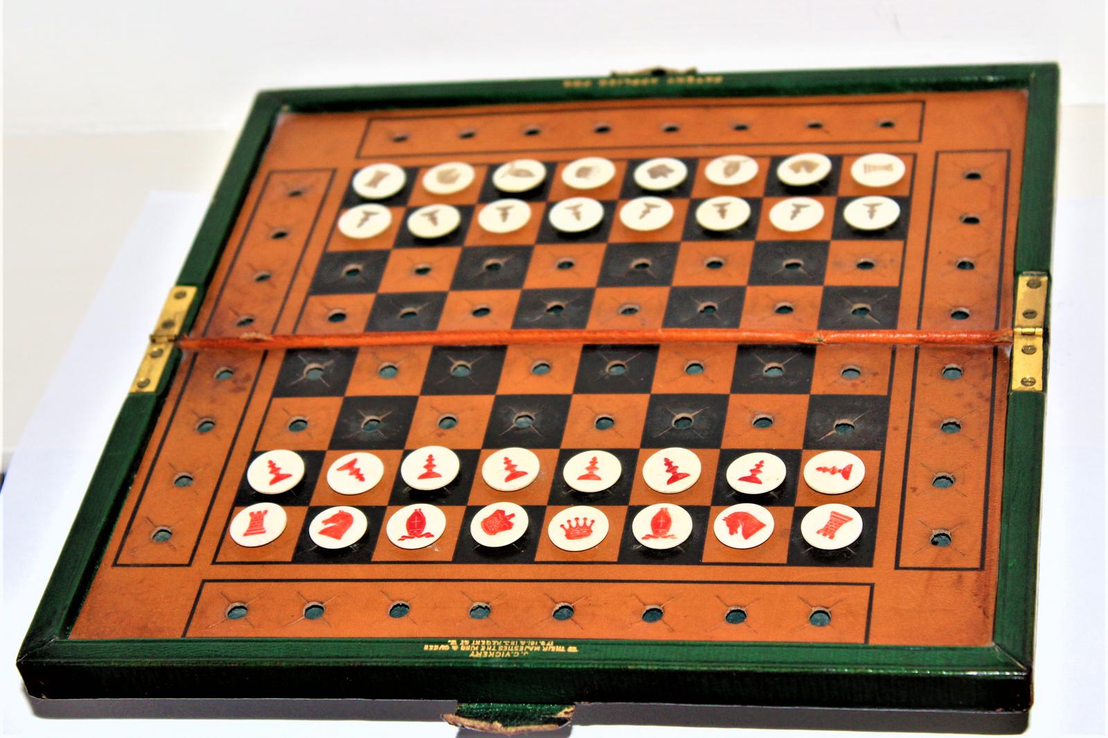 Unusual & Good Quality Edwardian Leather Travelling Chess Set by JC. Vickery of Regent Street London