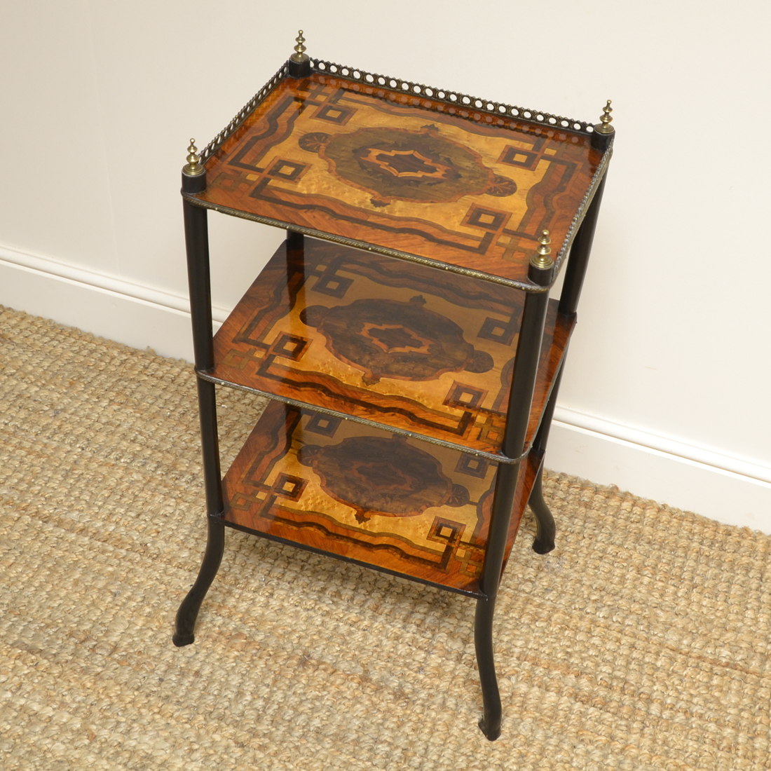 Unusual Inlaid French Victorian Antique Whatnot / Side Table