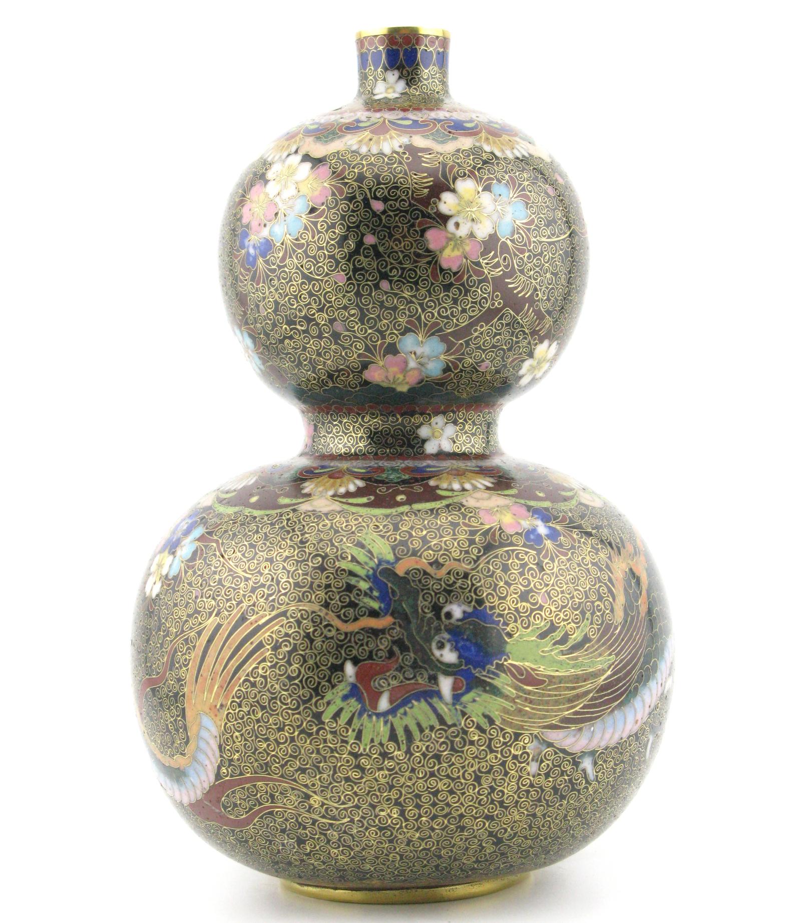 Unusual Japanese Cloisonné Double-Gourd Vase Meiji Period