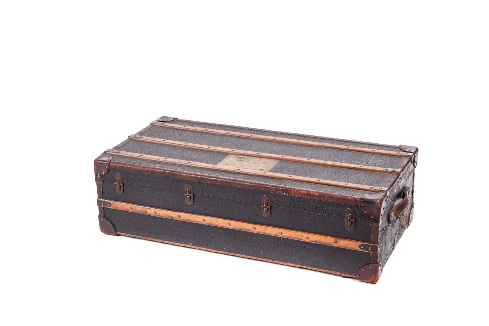 Unusual Large Oak & Leather Fitted Trunk C.1920