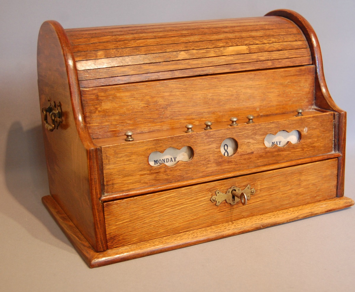 Unusual Late C19th Tambour Top Calendar Desk Box