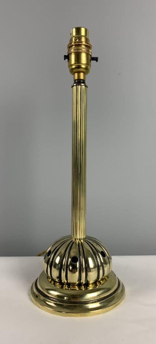 Unusual Late Victorian Brass Reeded Column Table Lamp, Rewired & PAT Tested