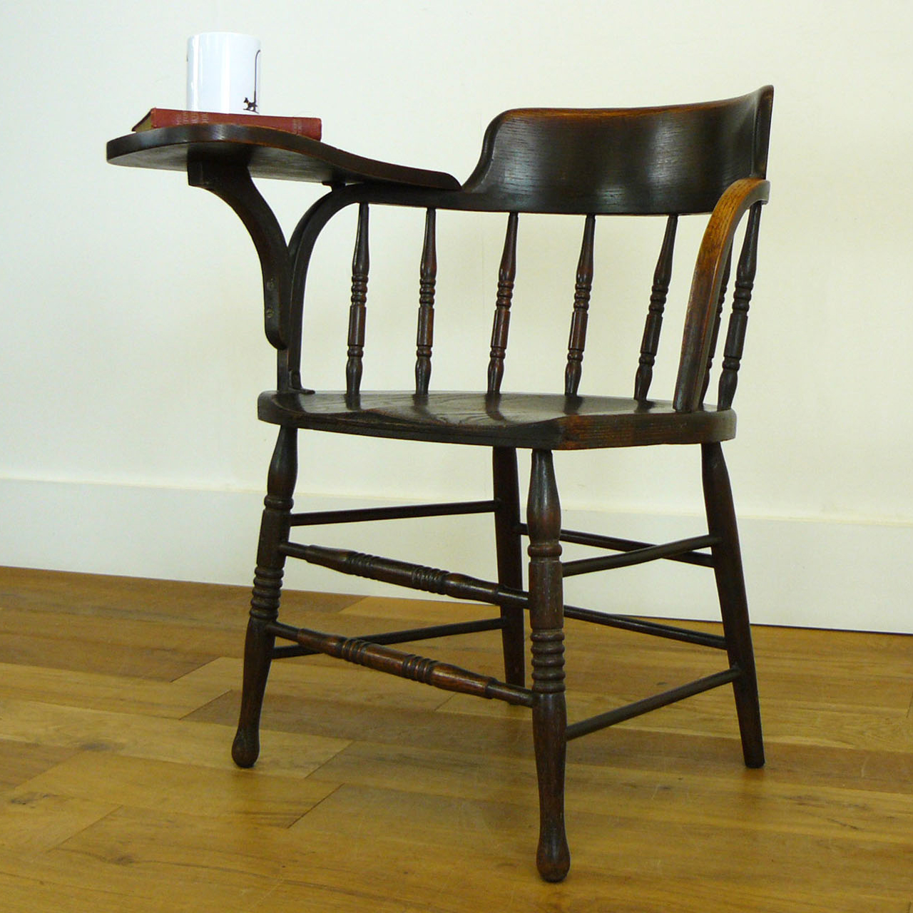 Unusual Late Victorian Oak Chair with Tablet Arm (1 of 1)