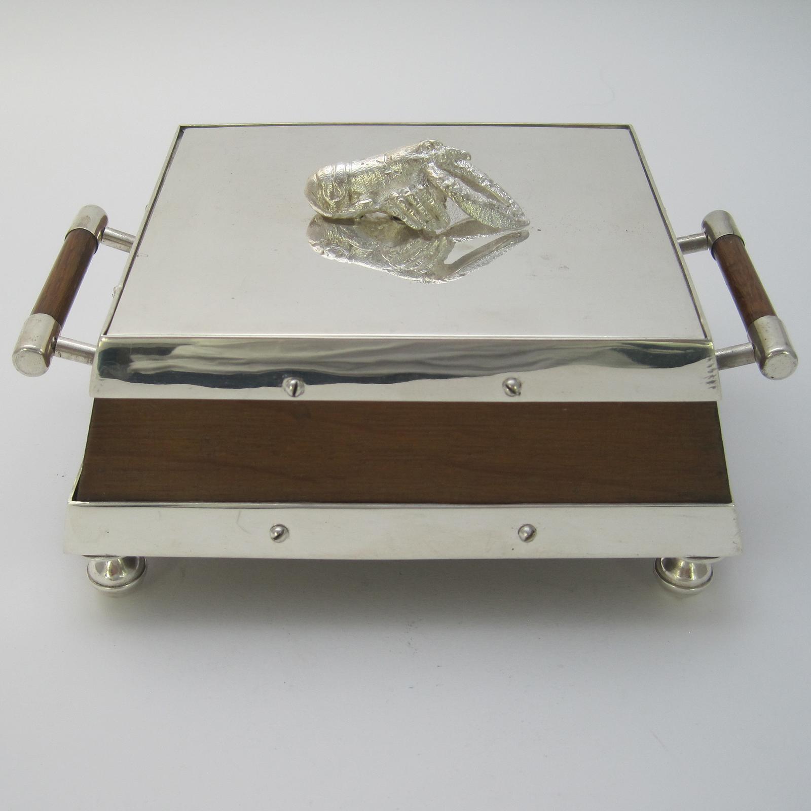Unusual Late Victorian Oak & Silver Plated Sardine or Preserve Dish