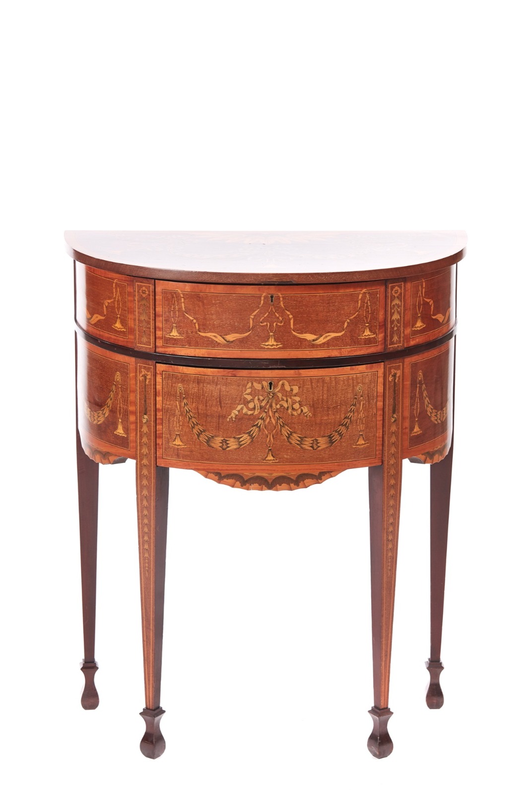 Unusual Mahogany Inlaid Edwardian Demi-Lune Side Table