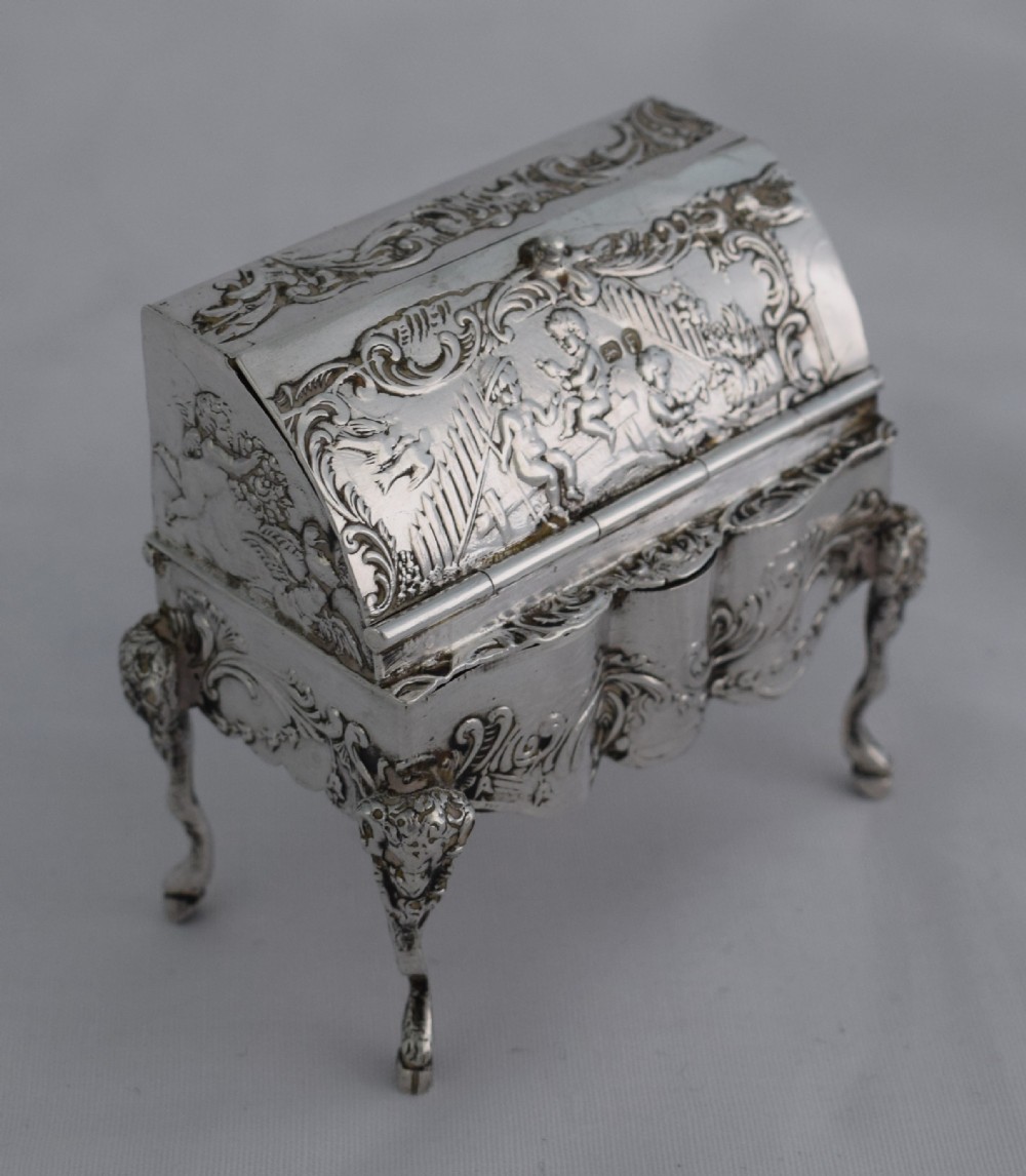 Unusual Miniature Silver Bureau Trinket Box Novelty Samuel Landeck Hanau 1911 Jewellery