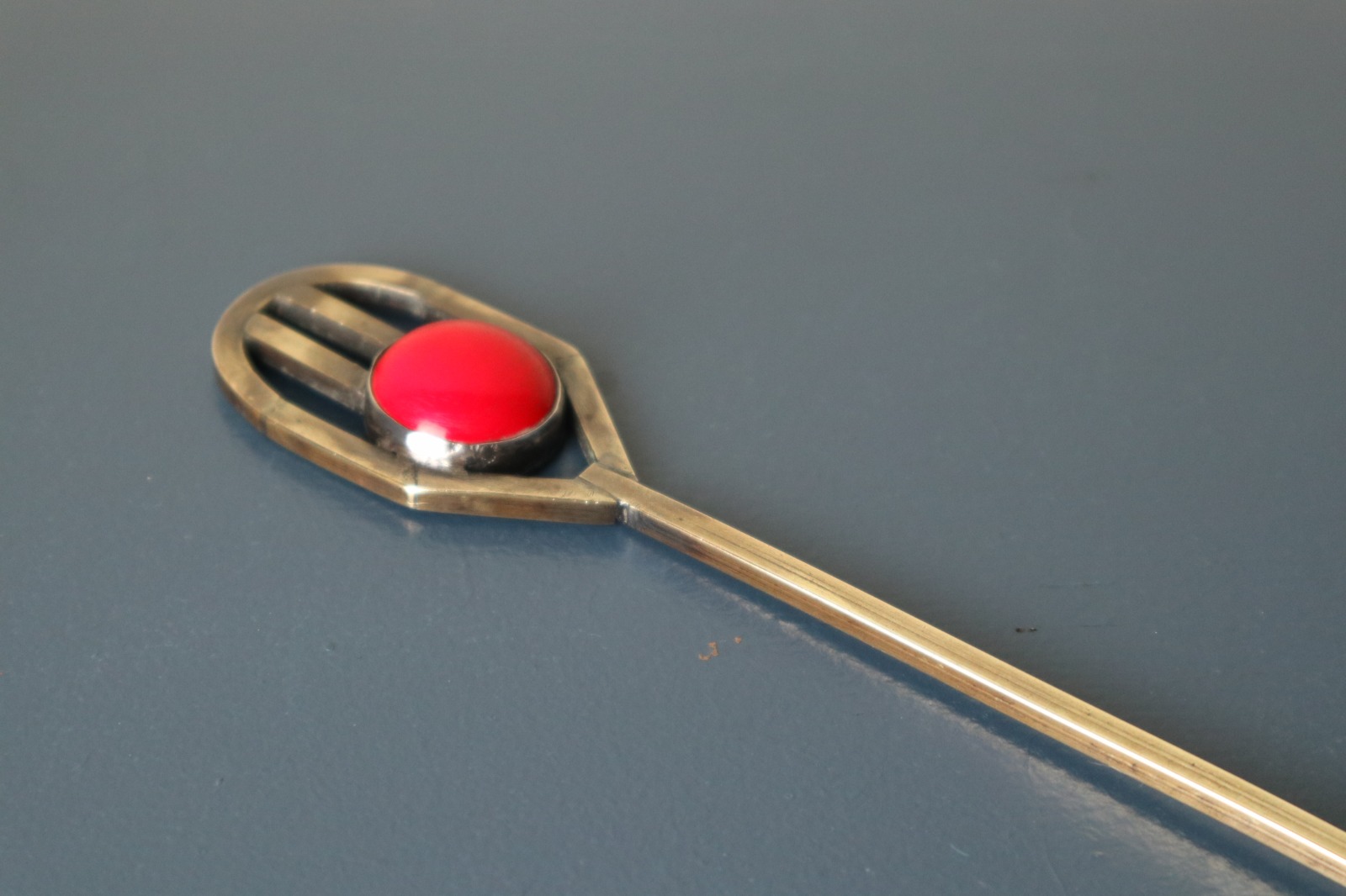 Unusual Modernist / Art Deco Brass & Red Bakelite Cabochon Geometric Two-Prong Toasting Fork C.1925 (1 of 28)