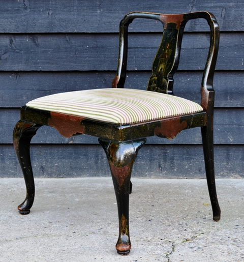 Unusual Oriental Black Lacquered & Hand Painted Chair c.1900