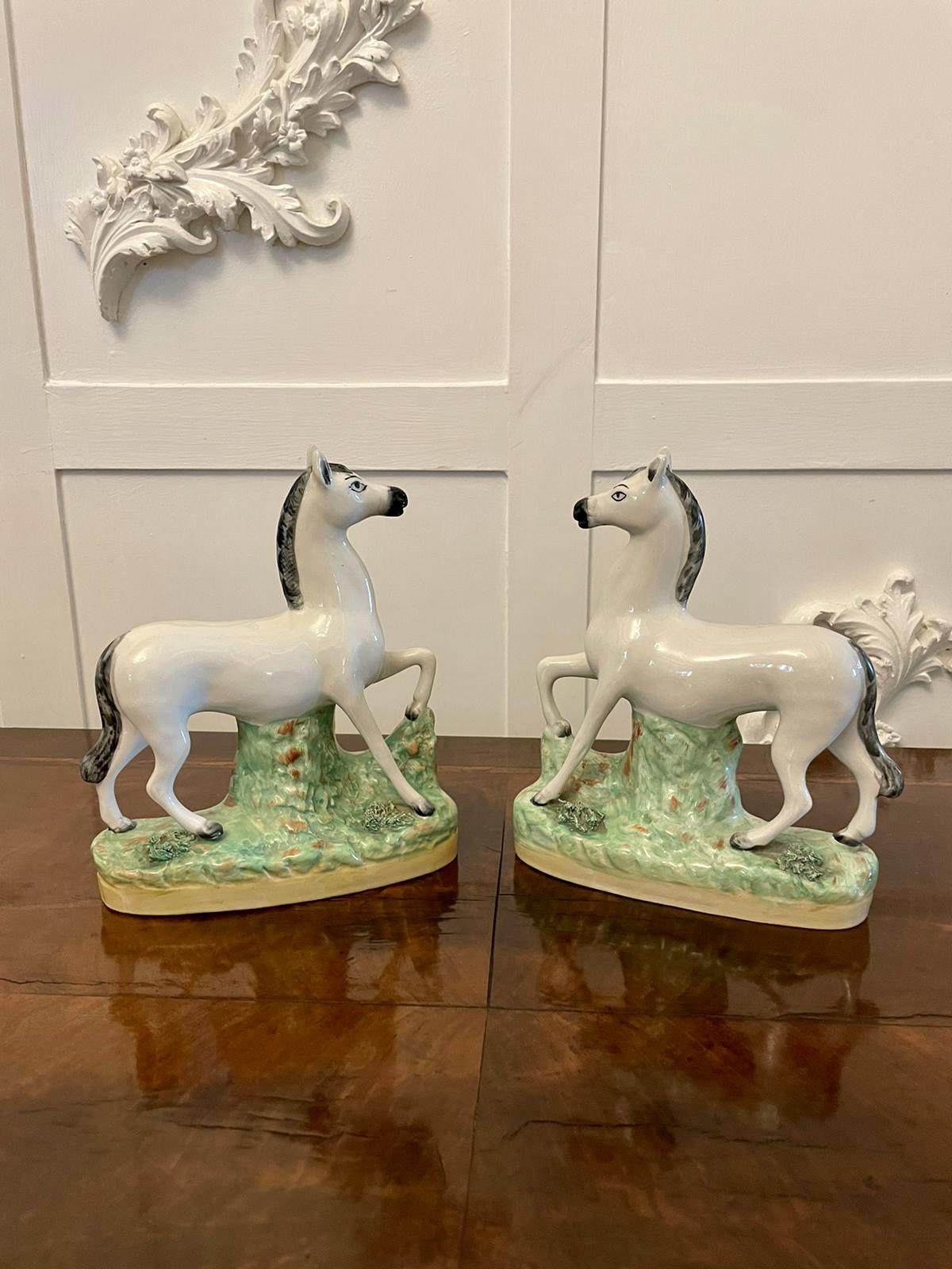 Unusual Pair of Antique Victorian Staffordshire White Horses (1 of 6)