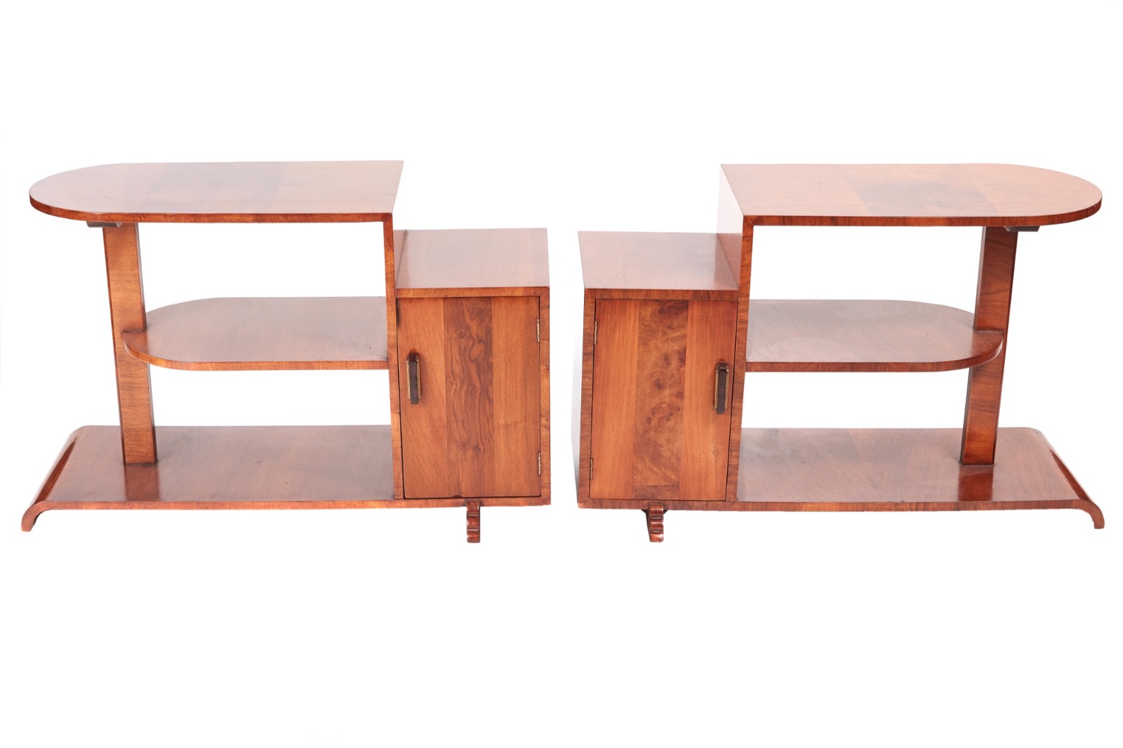 Unusual Pair of Art Deco Walnut Whatnots / Lamp Tables