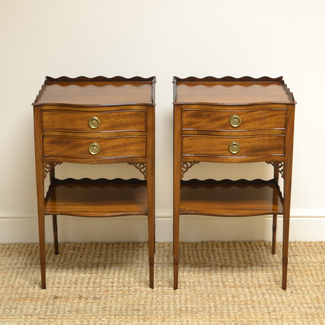 Unusual Pair of Edwardian Mahogany Antique Bedside Tables / Cabinets