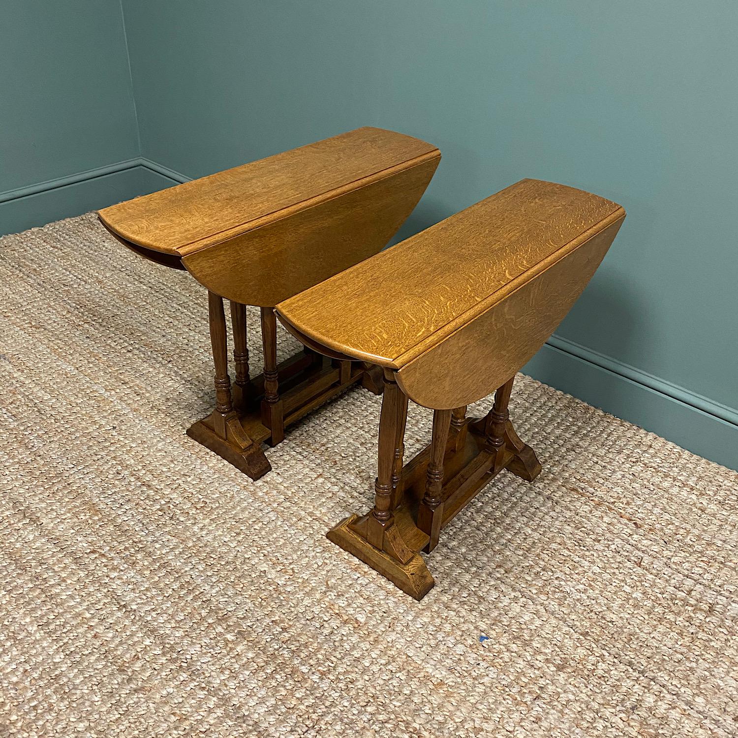 Unusual Pair of Edwardian Oak Drop Leaf Antique Sofa Tables