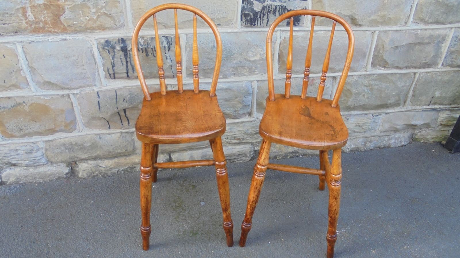 Unusual Pair of Elm Antique Tall Bar Stools