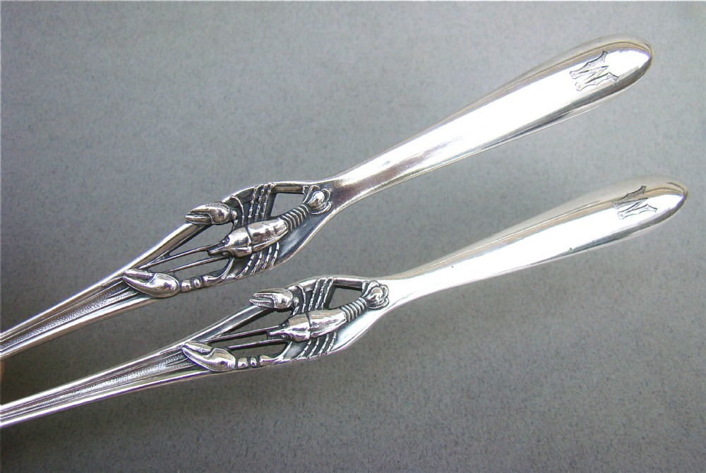 Unusual Pair of German Solid Silver Lobster Picks c.1910