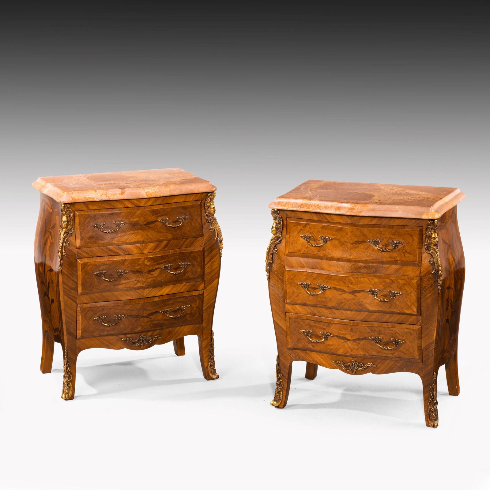 Unusual Pair of Kingwood Bombe Dwarf Commodes or Chests