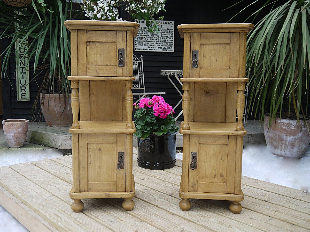Unusual Pair of Old Antique Pine Bedside Cabinets / Lamp Tables / Stands / Pot Cupboards