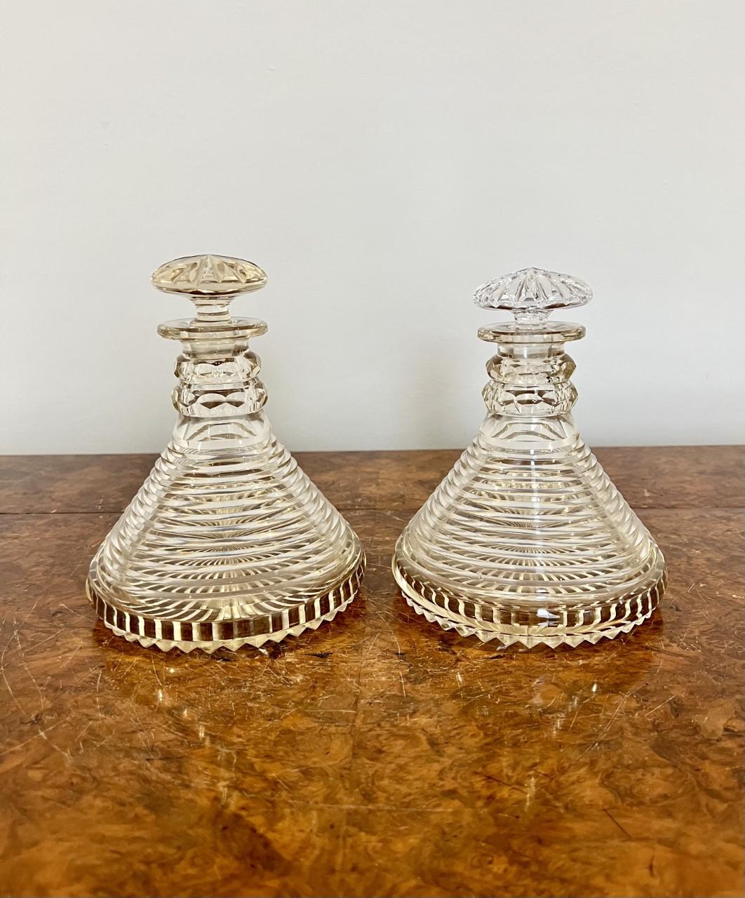 Unusual Pair of Quality George III Cut Glass Ships Decanters