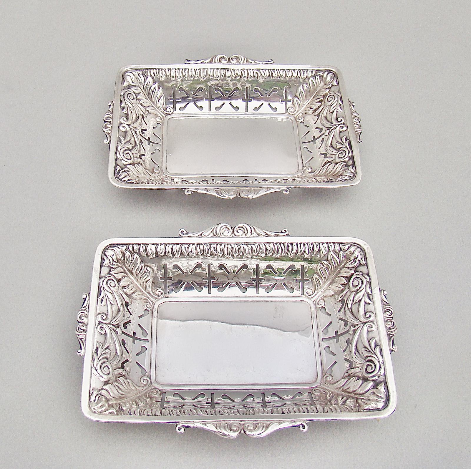Unusual Pair of Victorian Silver Bonbon Dishes by Minshull & Latimer, Birmingham 1898