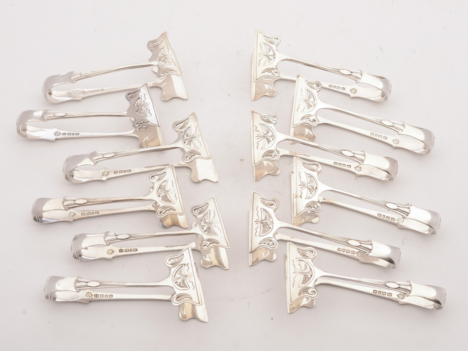 Unusual Set of 12 Edwardian Serving Tongs c.1905