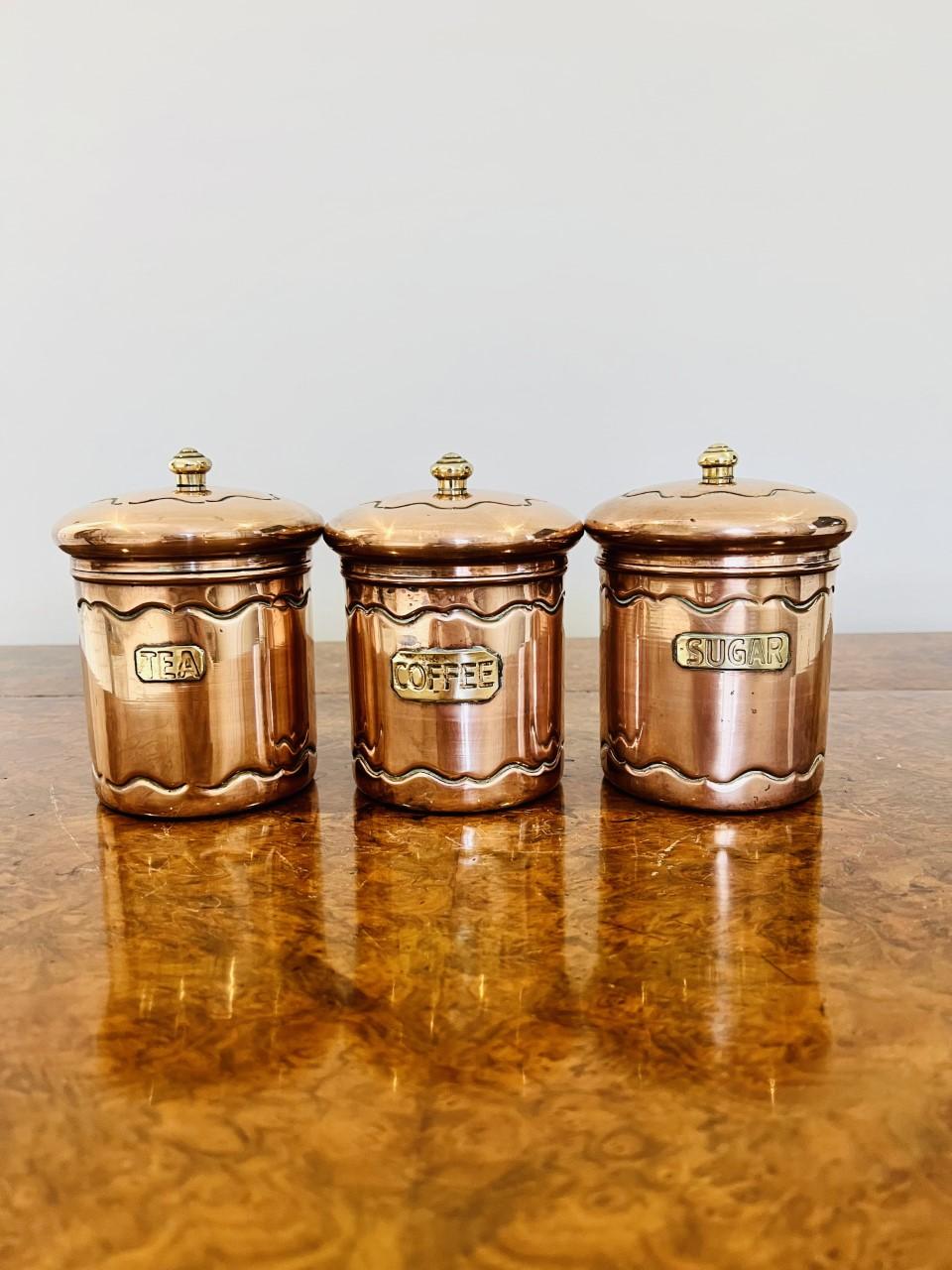 Unusual Set of Three Antique Copper Tea, Coffee and Sugar Jars