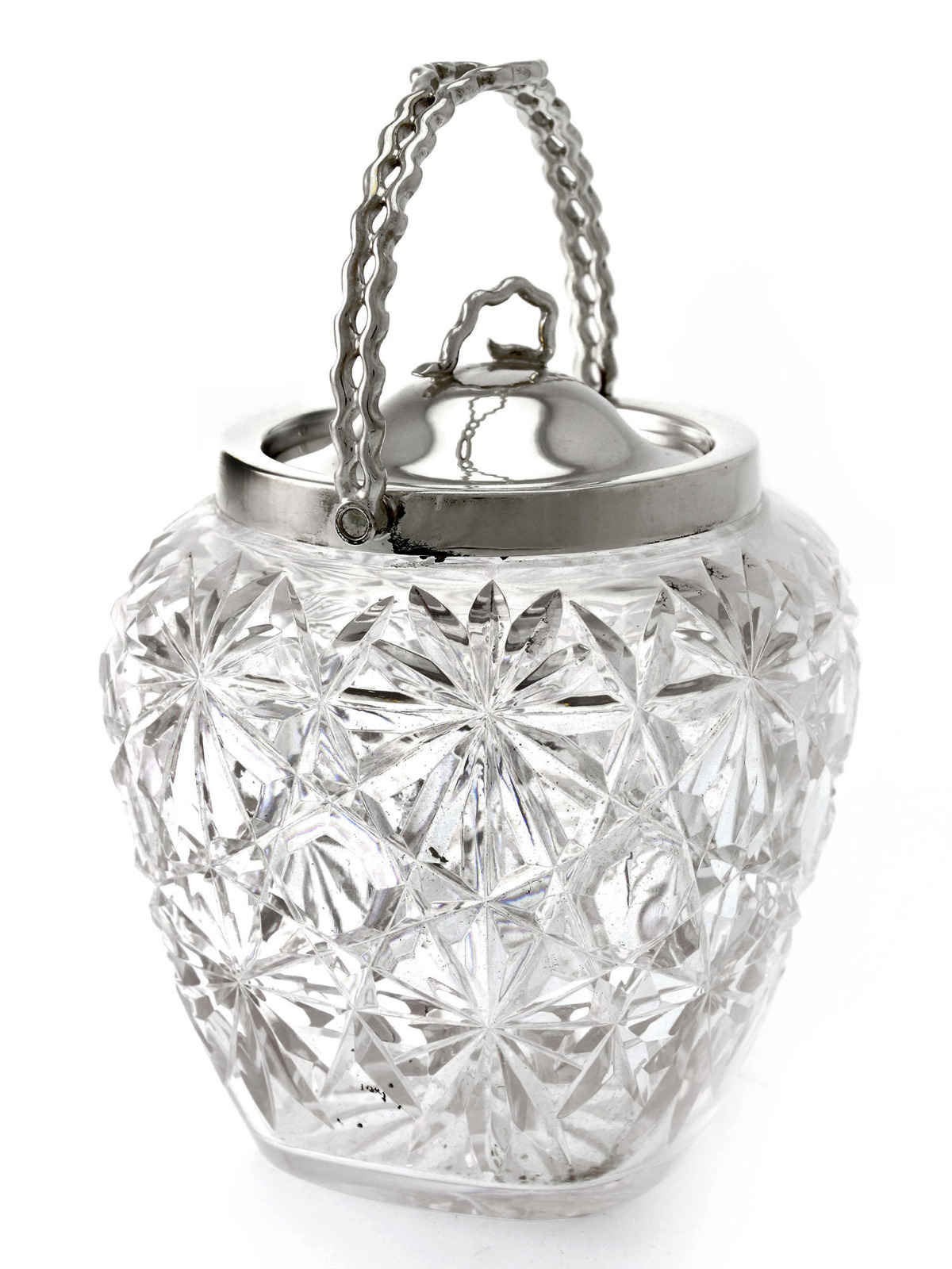 Unusual Shape Antique Silver Plated & Cut Glass Biscuit Barrel