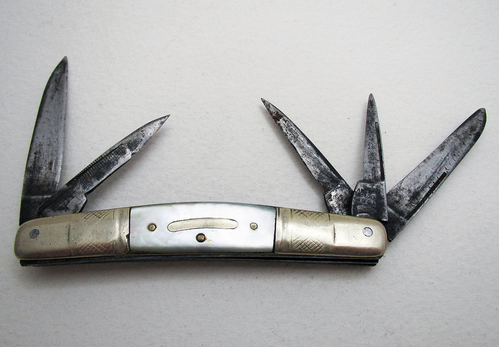 Unusual Sheffield Mother of Pearl Mop Antique Multi Bladed Pocket Folding Knife Sportsman Penknife