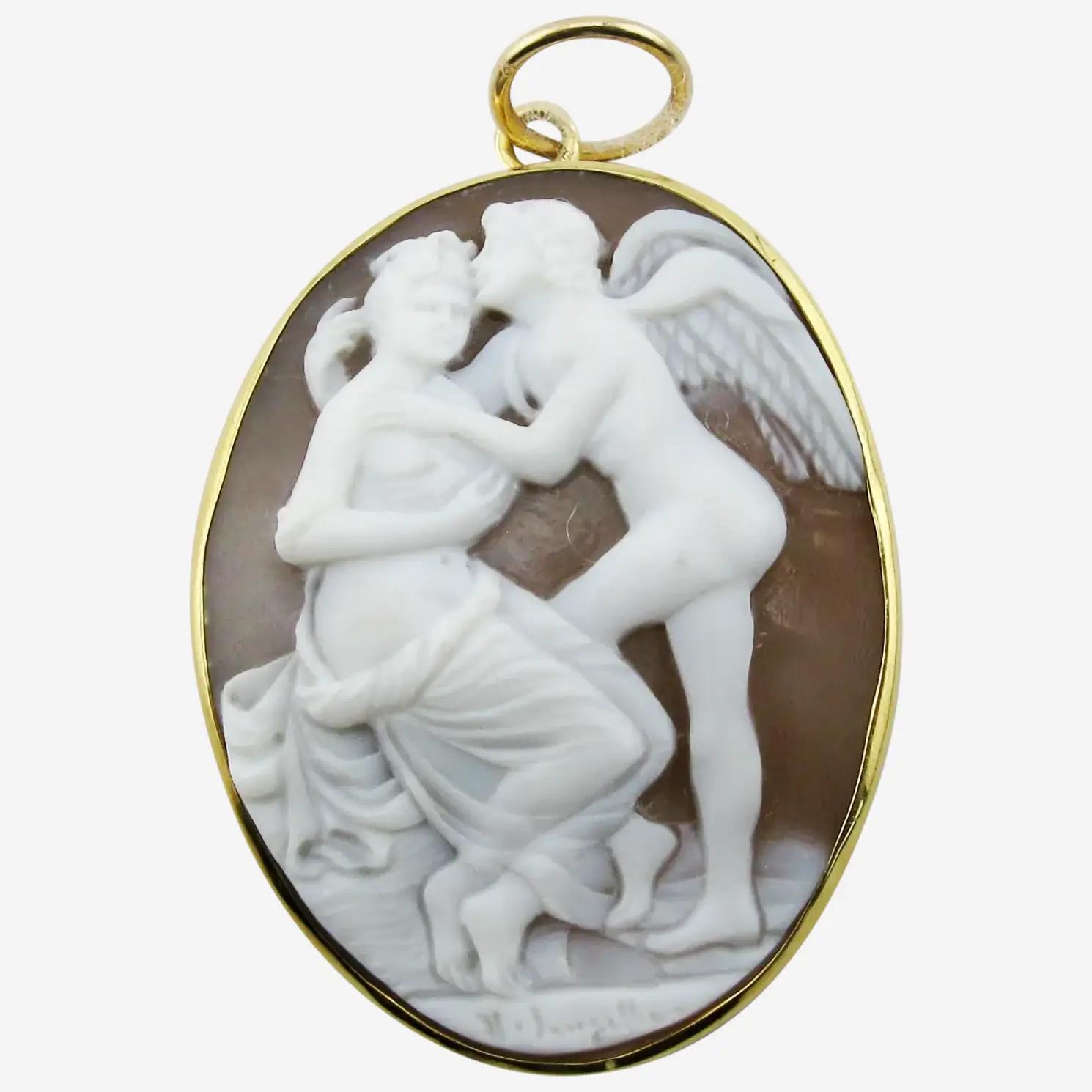 Unusual Signed Shell Cameo Pendant 18ct Gold