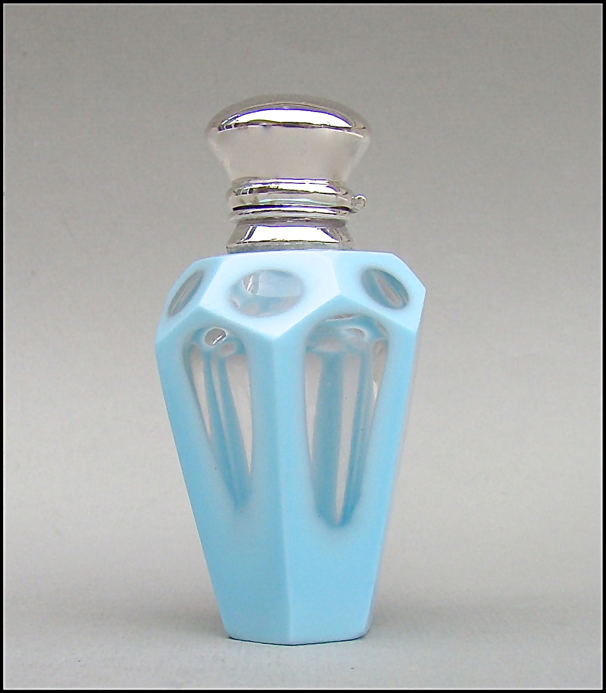 Unusual Silver Mounted Pale Blue Opaline Glass Scent Bottle 1890