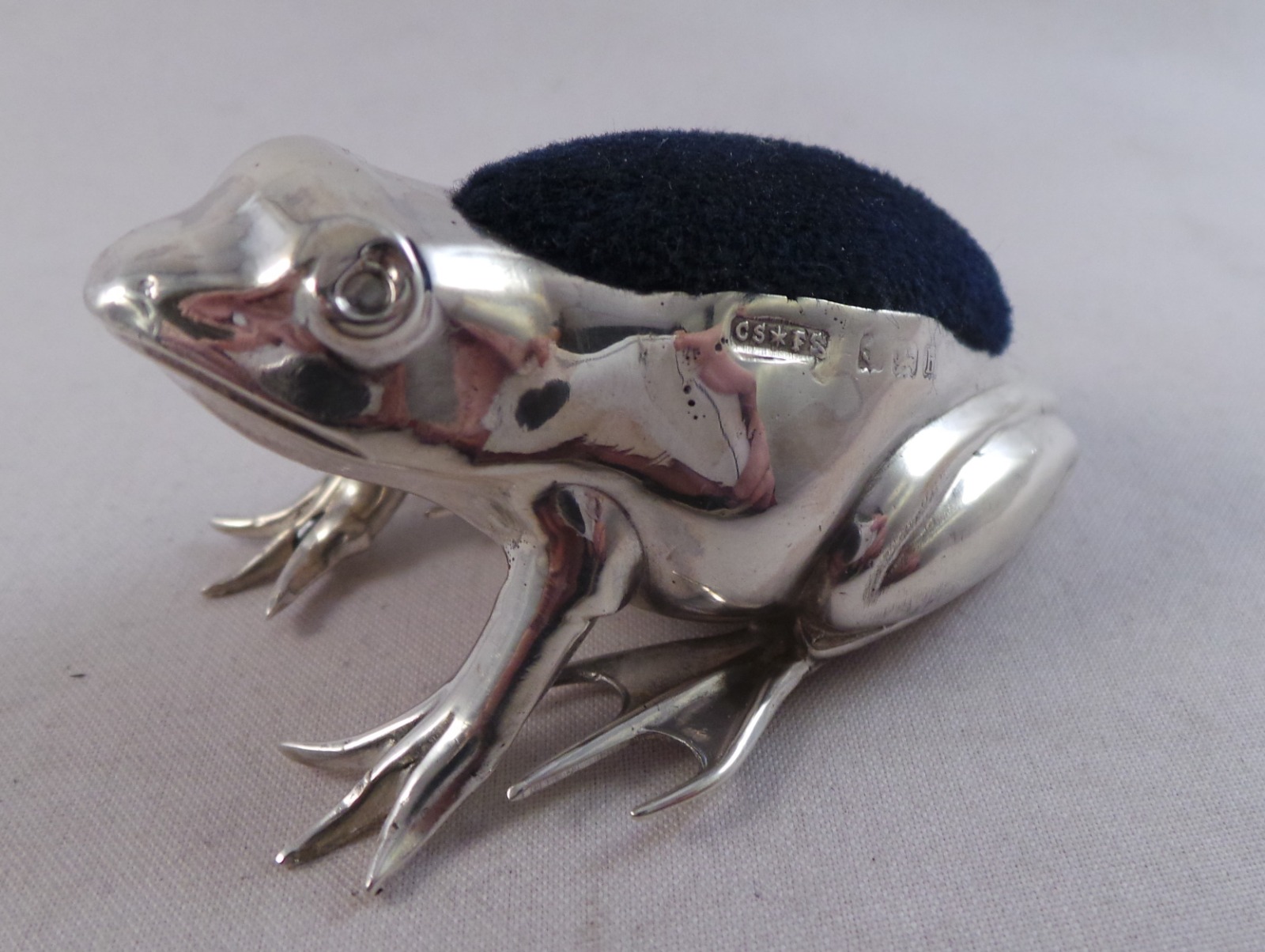 Unusual Size Rare Antique Silver Frog Pin Cushion Birmingham 1907