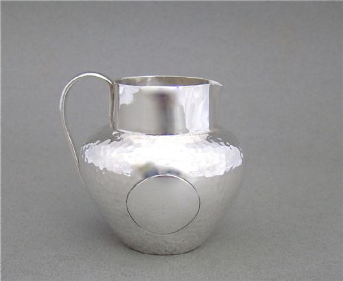 Unusual Small Arts & Craft Spot-hammered Silver Cream Jug by Saunders & Shepherd, Birmingham 1903