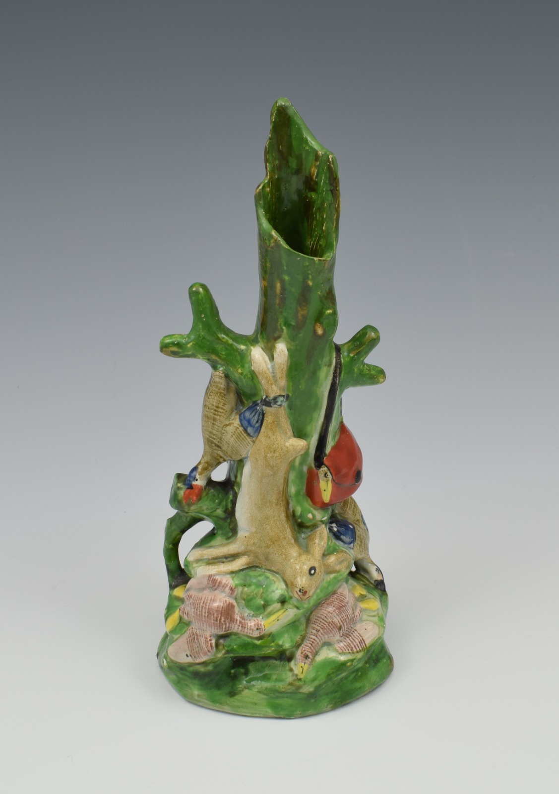 Unusual Staffordshire Pottery Pearlware Game Spill Vase C.1820