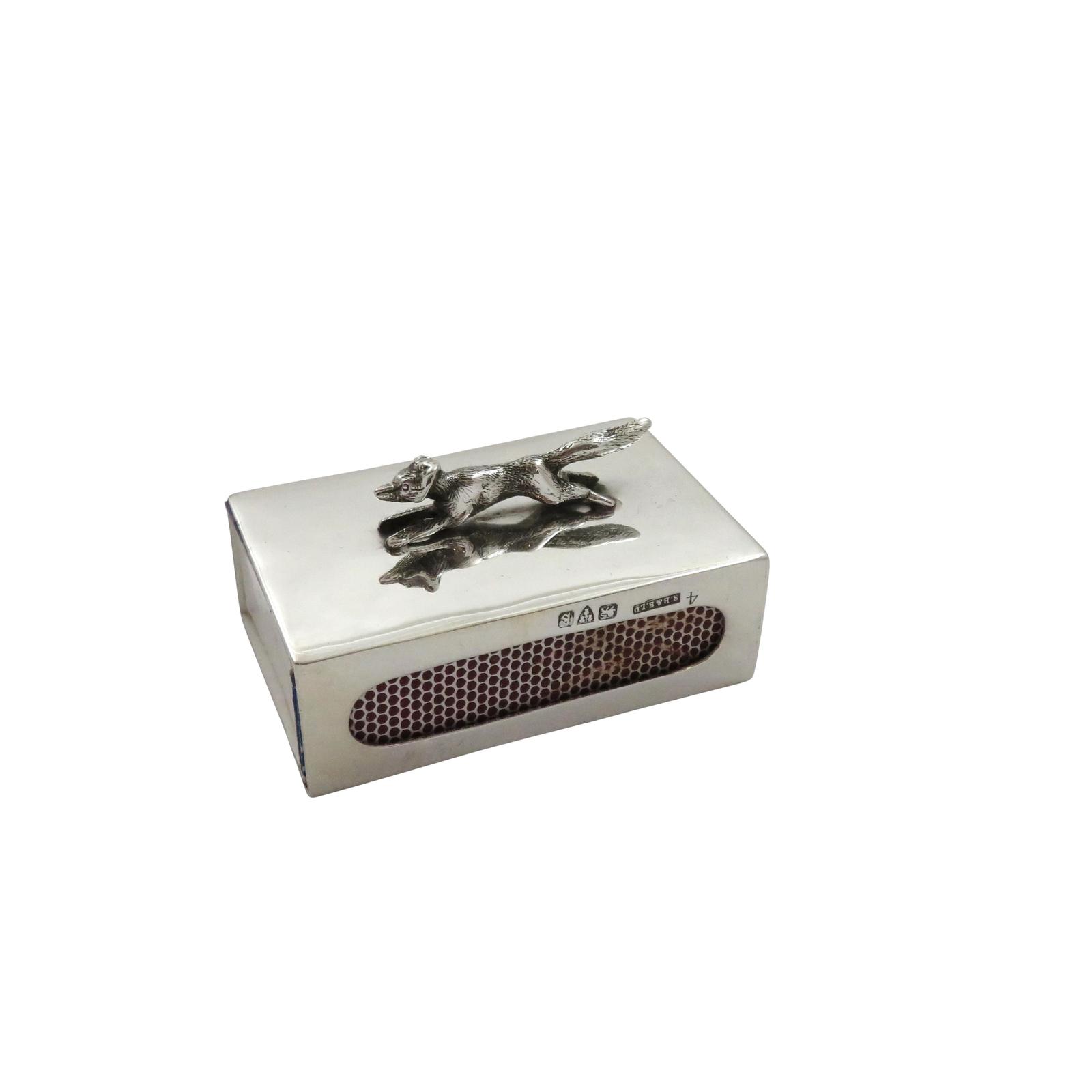 Unusual Sterling Silver Fox Match Box Holder 1927