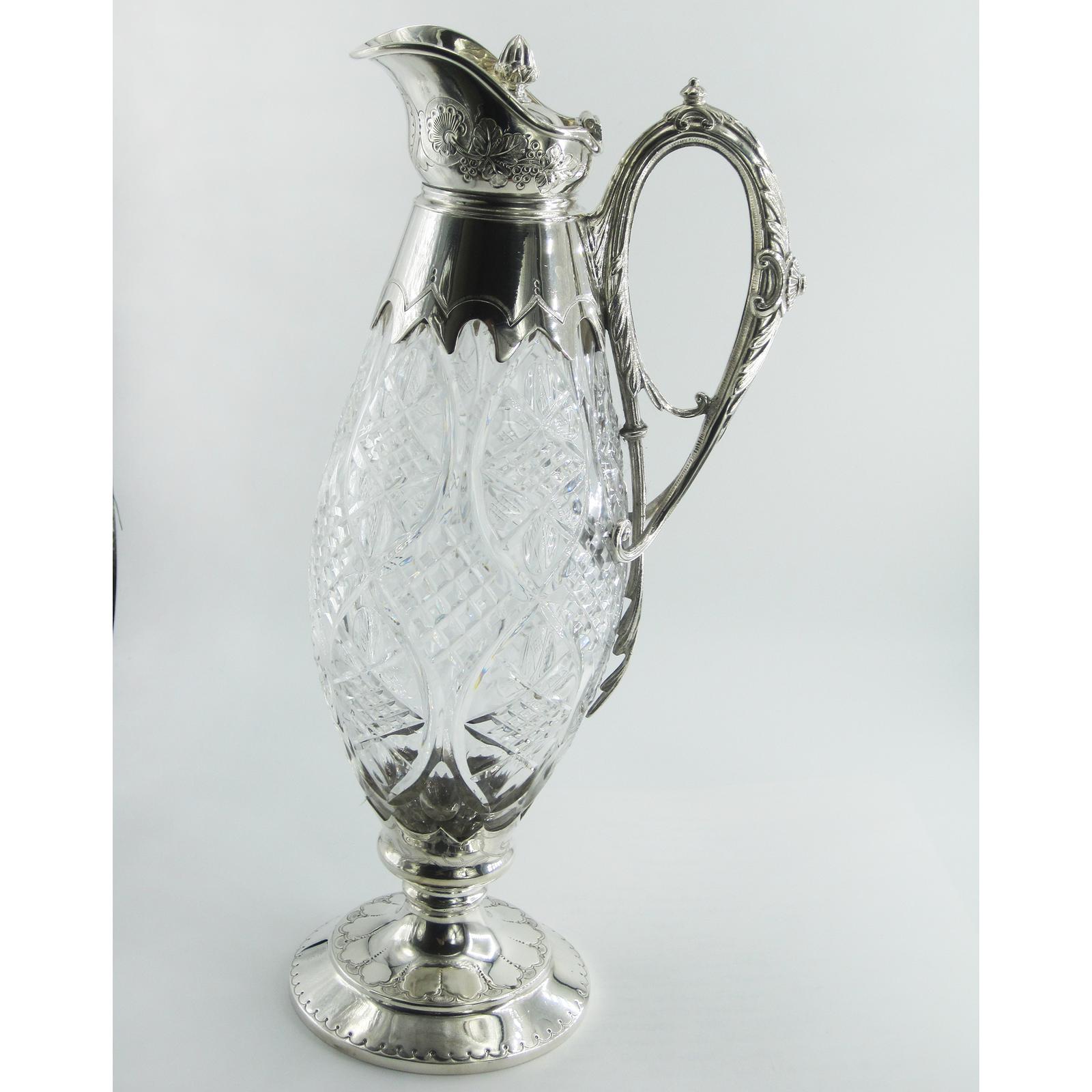 Unusual Style Silver Plated Claret Jug with Embossed Grape & Vine Pattern Mount