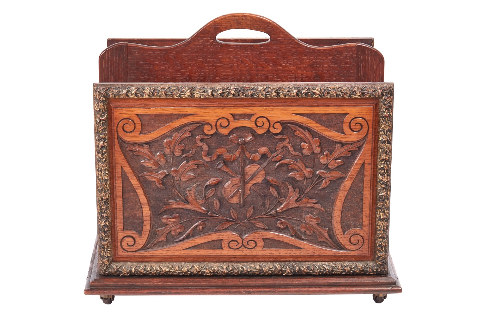 Unusual Victorian Quality Freestanding Carved Oak Canterbury