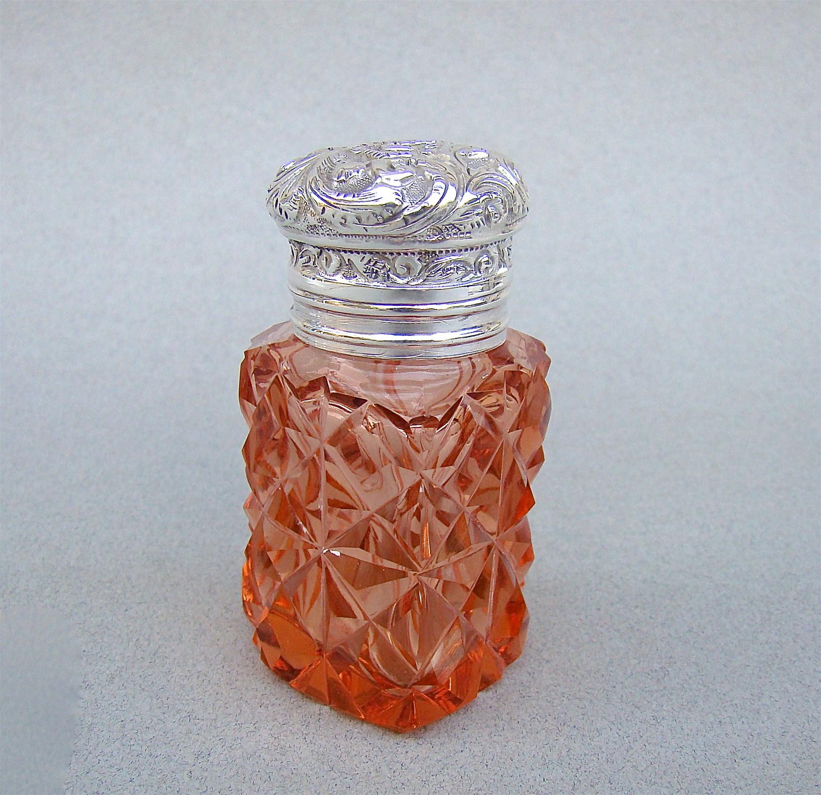Unusual Victorian Silver & Cut Glass Heart-shaped Scent Bottle c.1895