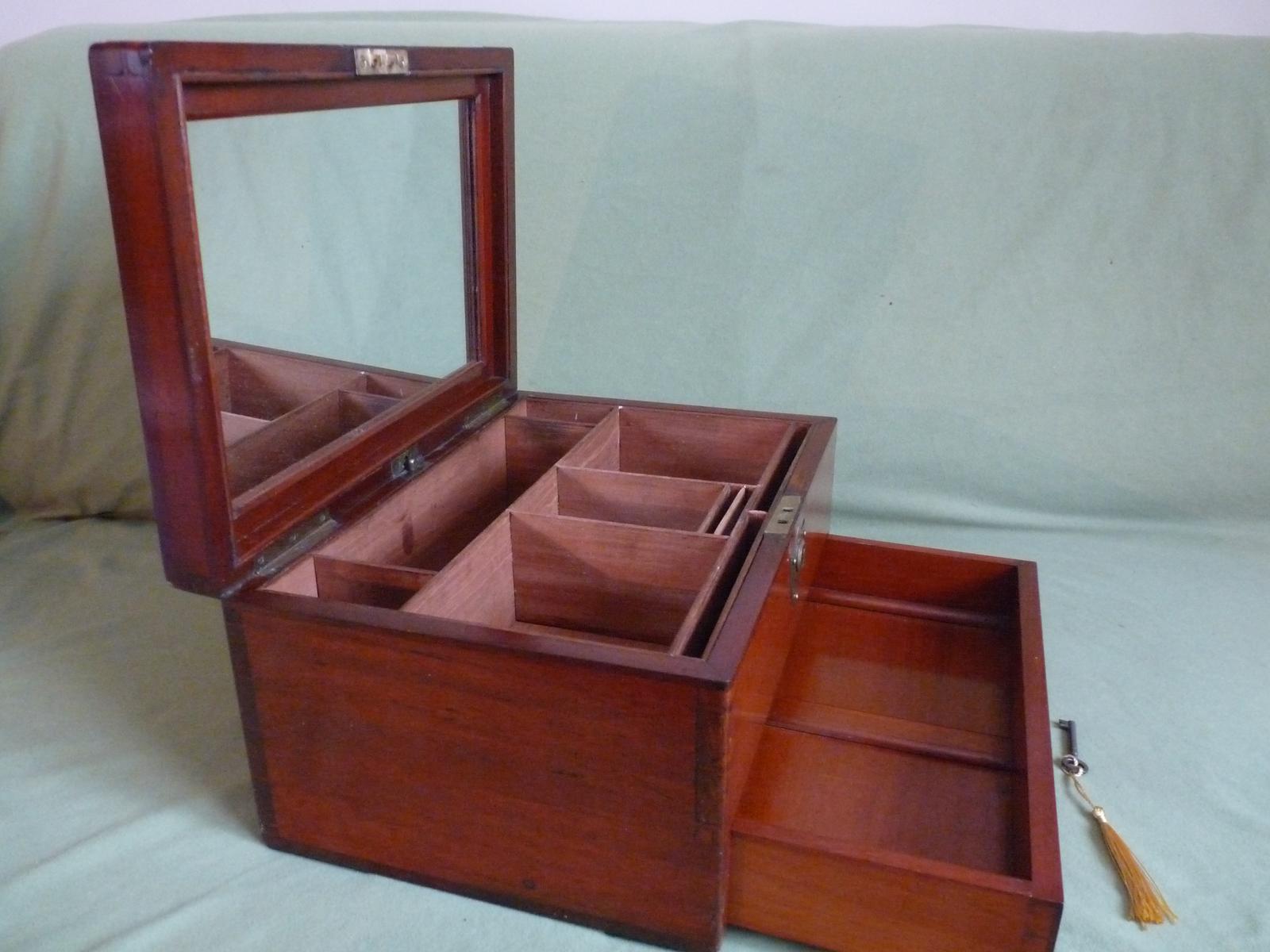 Unusual Victorian Solid Mahogany Jewellery – Table Box. Secret Drawers c.1890