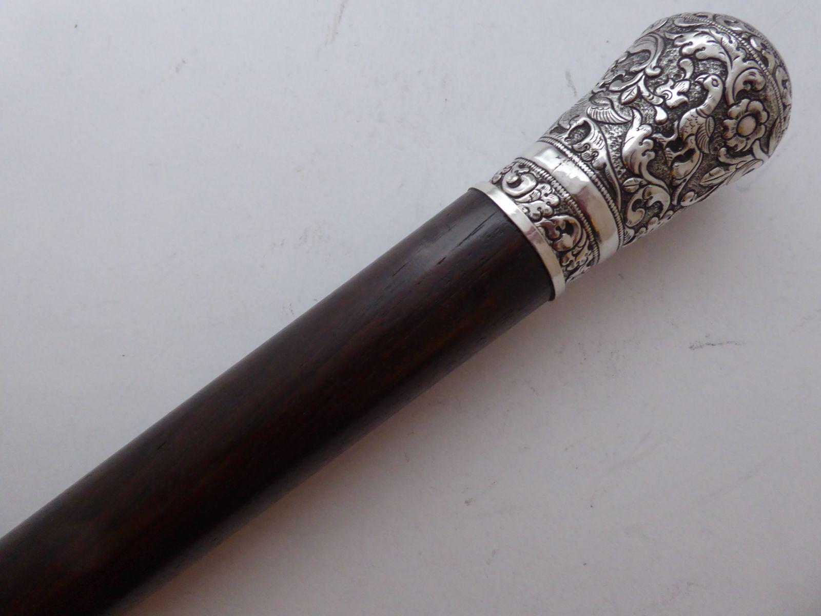 Unusual Victorian Walking Stick Cane Large Silver Pommel Rosewood Shaft