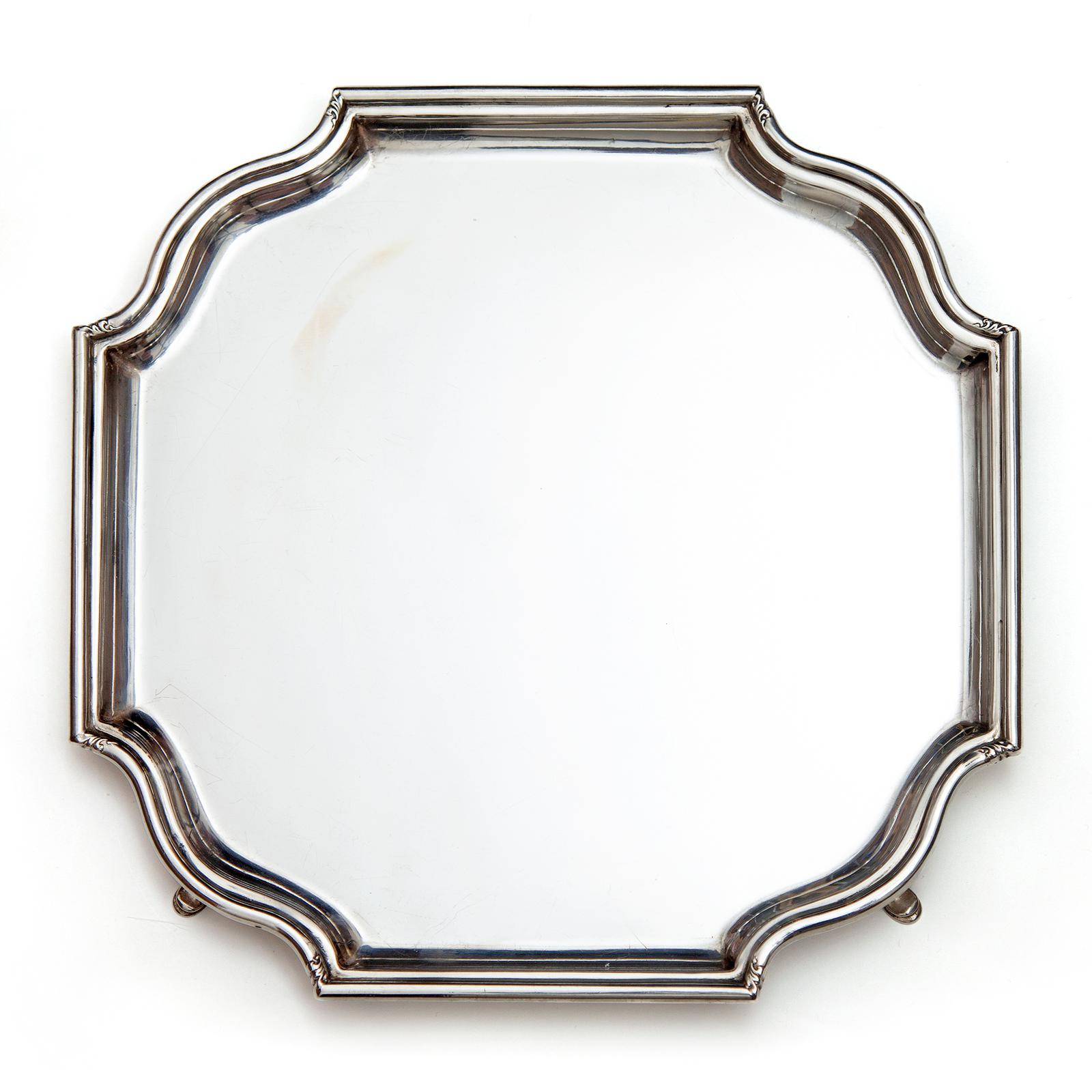 Unusual Vintage Square Shaped Silver Salver on Four Hoof Feet