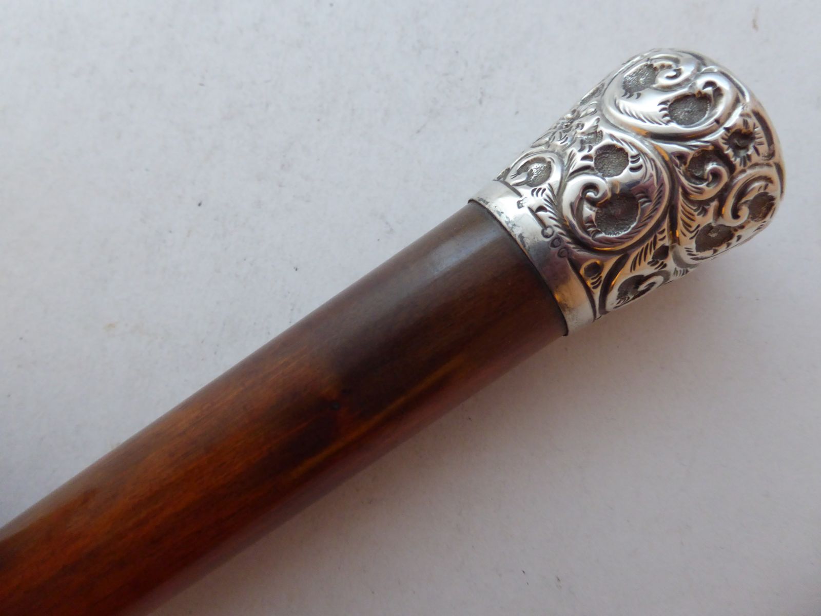 Unusual Walking Stick Cane 1889 Hallmarked Solid Silver Pommel Blackthorn Shaft