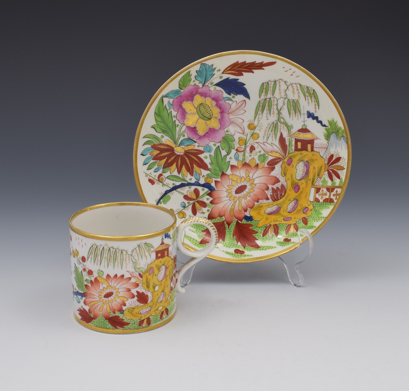 Unusual Worcester Barr Flight & Barr Porcelain Coffee Can & Saucer