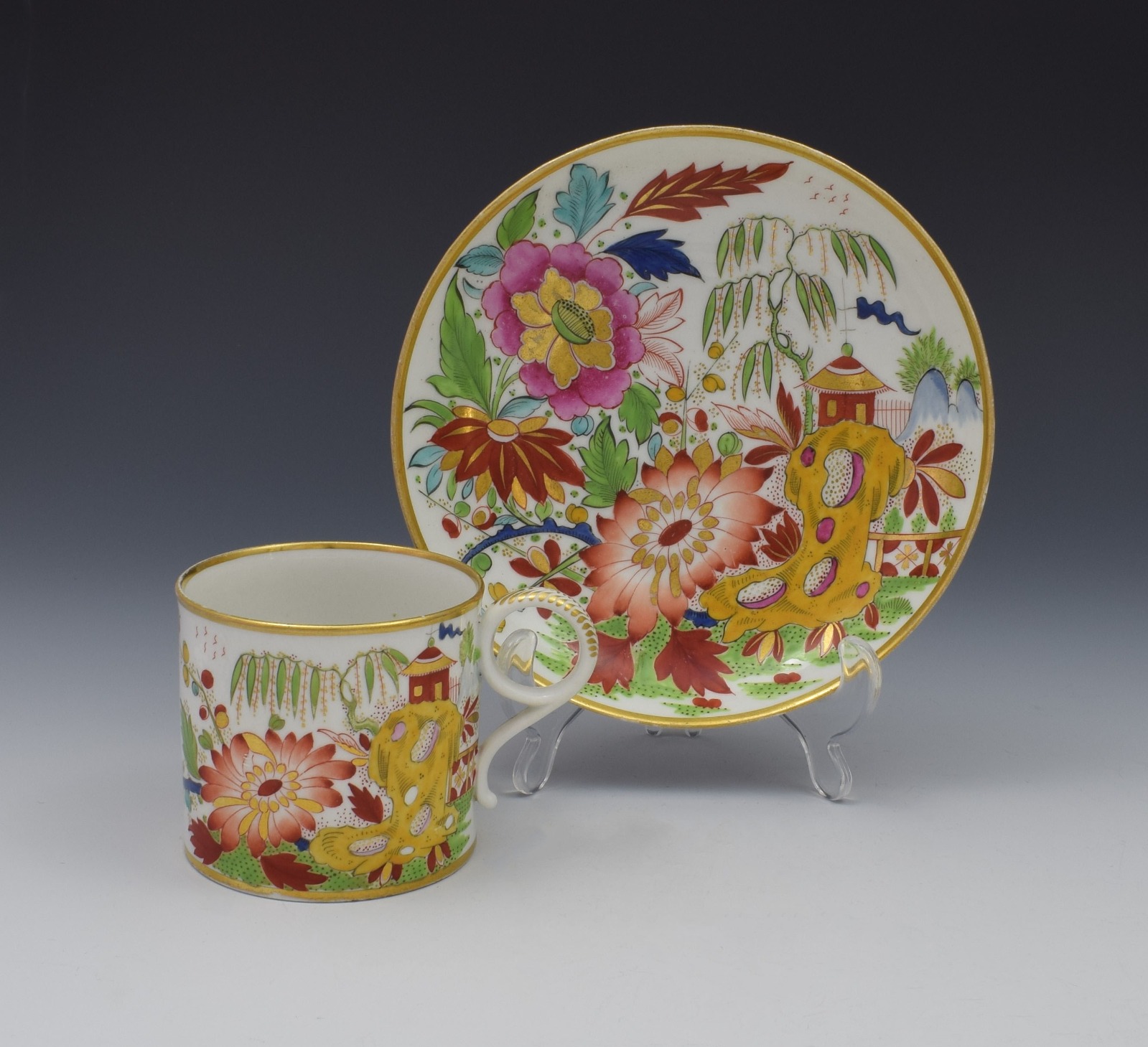 Unusual Worcester Barr Flight & Barr Porcelain Coffee Can & Saucer