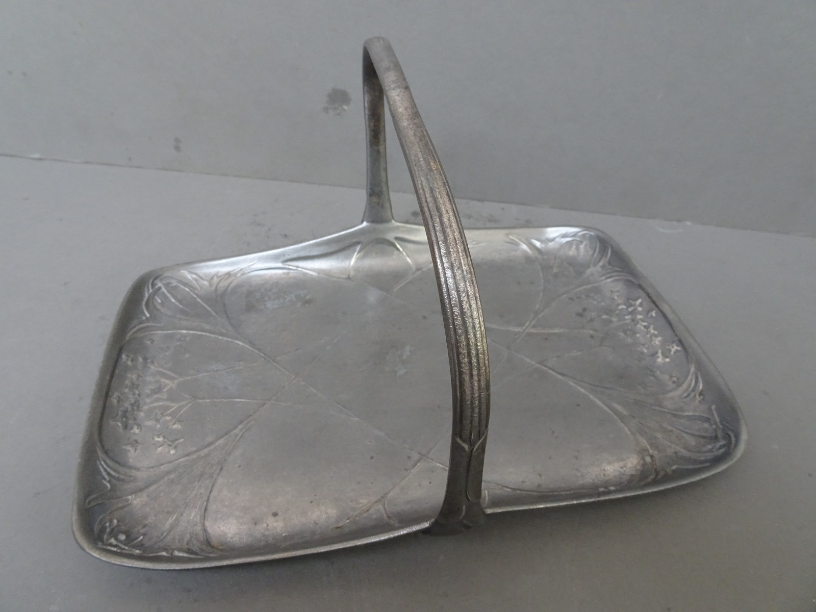 Urania. Art Nouveau Pewter Cake Tray. Basket Form c.1900 Holland