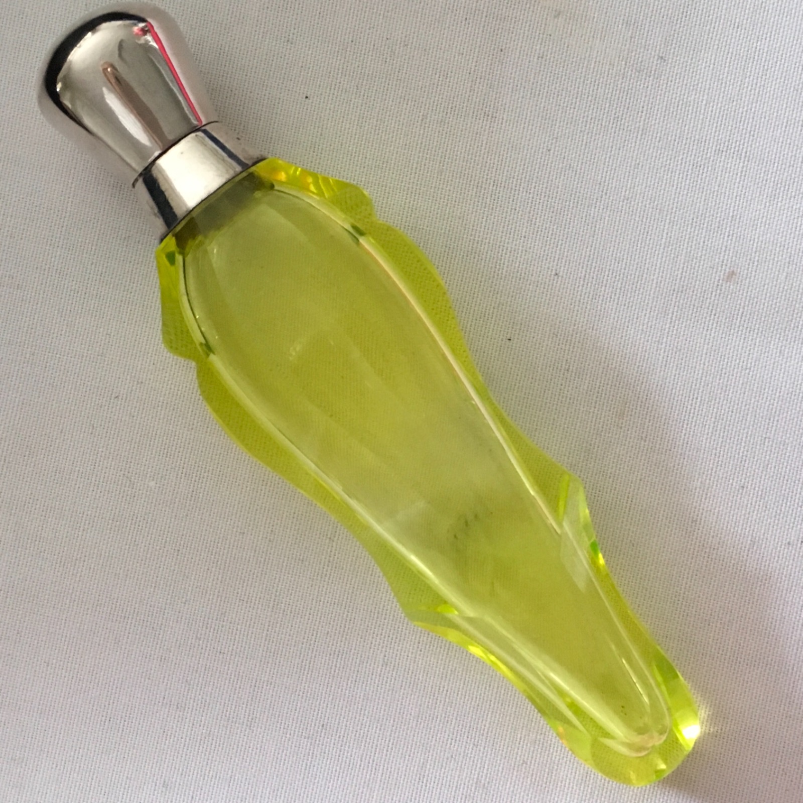 Uranium Glass Scent Bottle with Silver Fittings - Victorian c.1880
