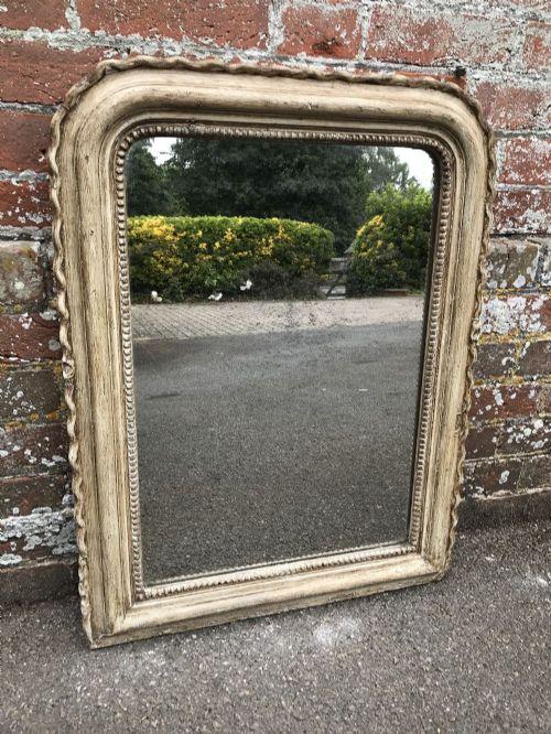 Useful 19th Century Antique French Distressed Painted Pie Crust Mirror