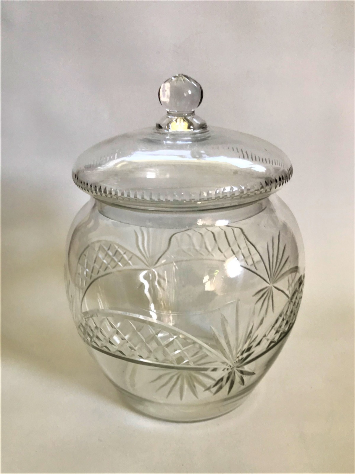 Useful Size Cut Glass Biscuit Barrel (1 of 5)