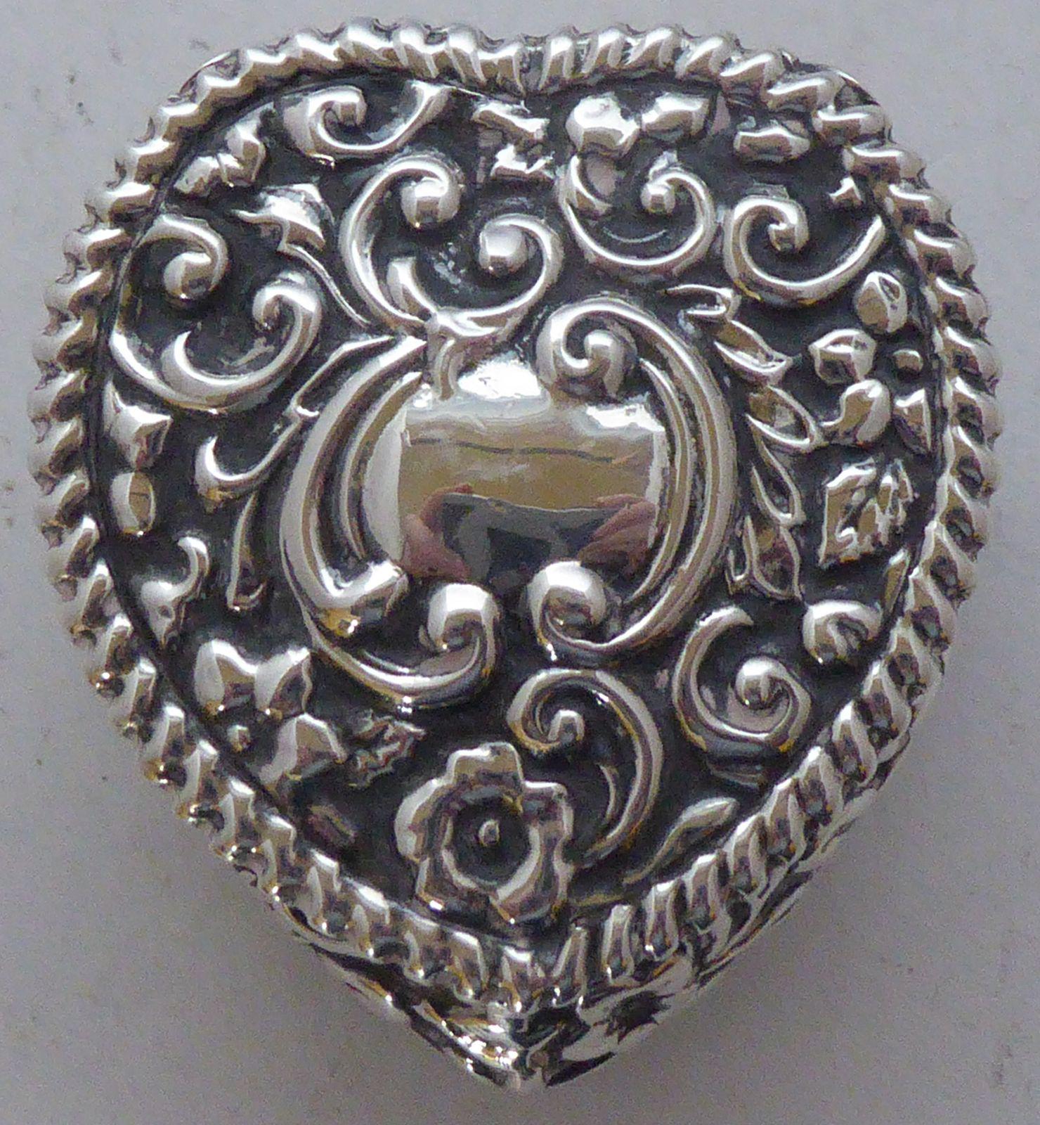 Valentine Love Heart 1900 Hallmarked Solid Silver Pill Jewellery Earring Box