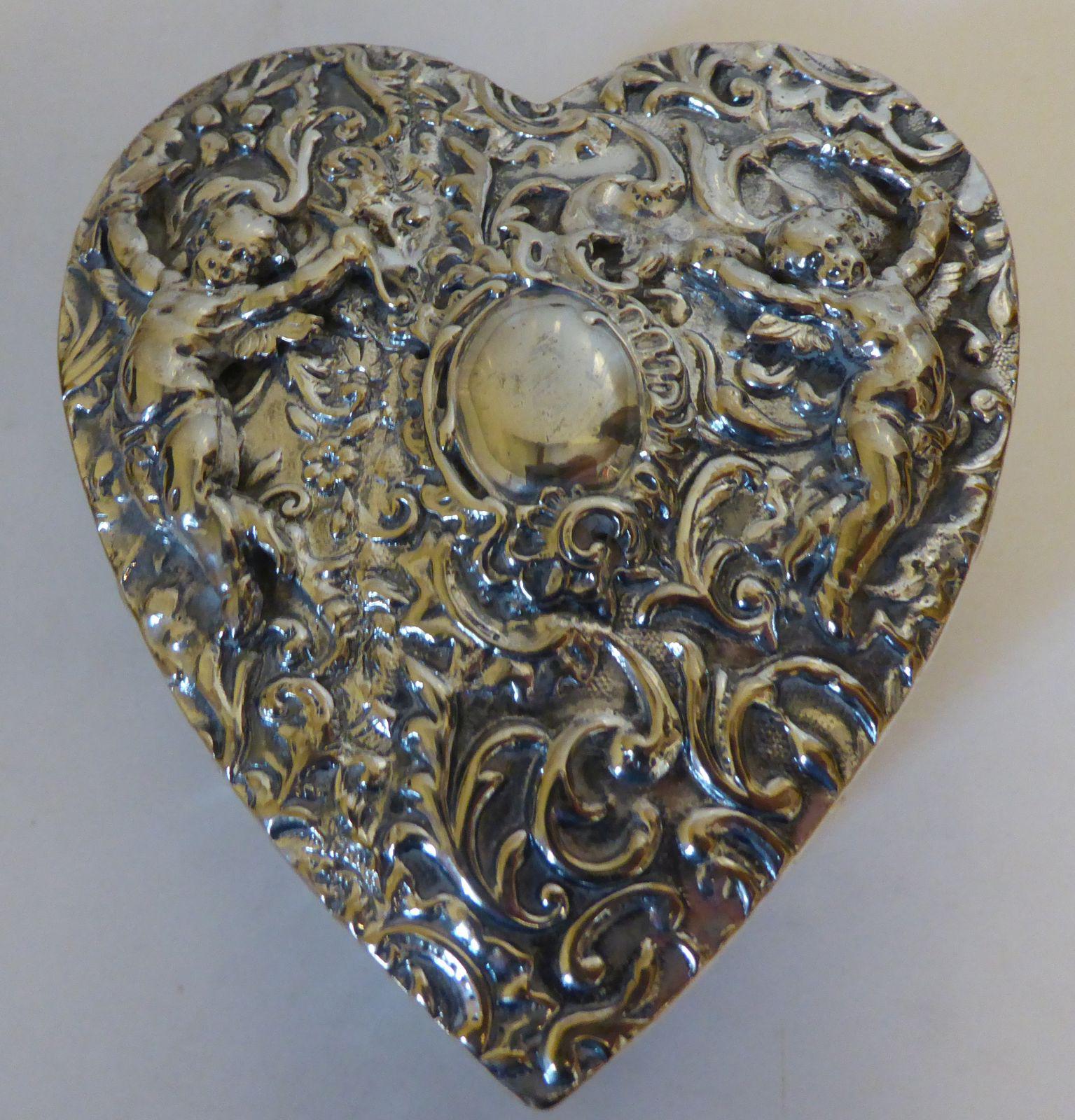Valentine Love Heart 1920's Silver Plated Pill Jewellery Earring Box