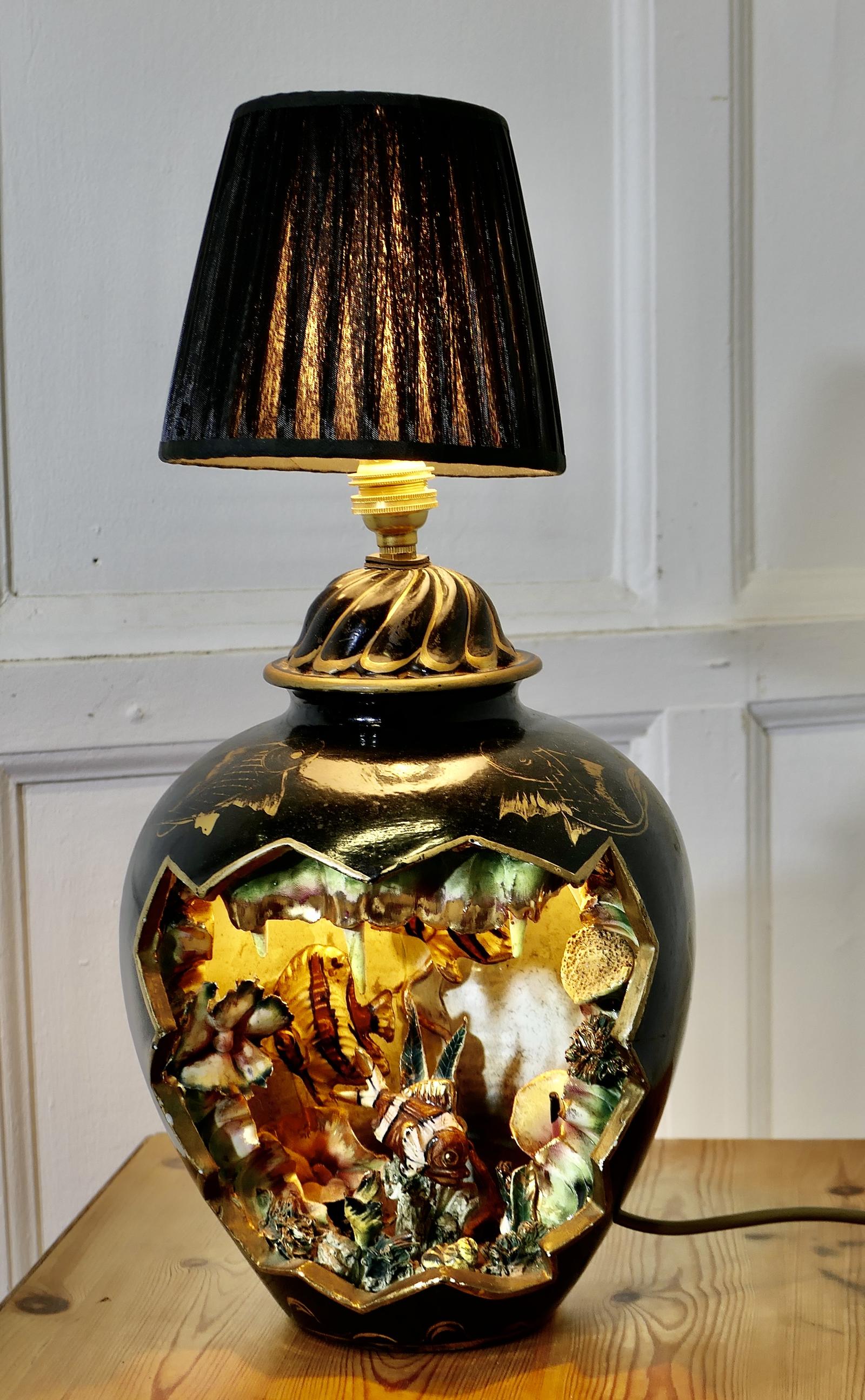 Vallauris Pottery Aquarium Lamp Signed Kérina Monaco